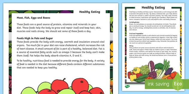 Reading Comprehension About Food Healthy Eating Task